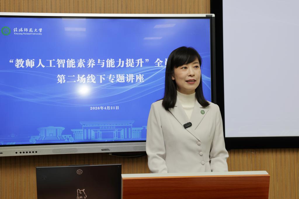 4月21日,学校采用线上线下相结合的方式,举办“教师人工智能素养与能力提升”全员培训工作第二场线下专题讲座。副校长王娟出席活动并讲话。会议主会场设在社科楼120教室,各学院设置分会场,全校专任教师、实验技术人员和教学管理人员参加会议。